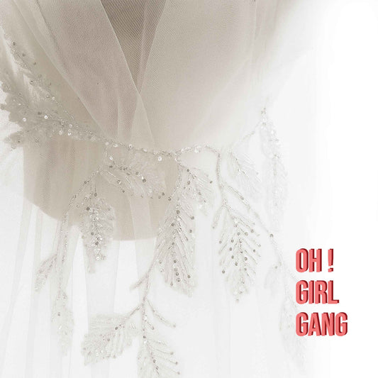 Boho Bridal Veil with Beaded Leaf Appliqué Juliet Cap Veil