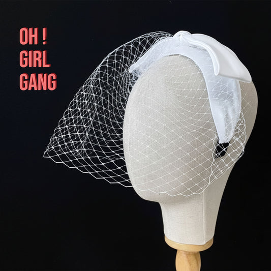 Bridal Birdcage Veil with White Bow – Vintage 1940s Short Hair Headband