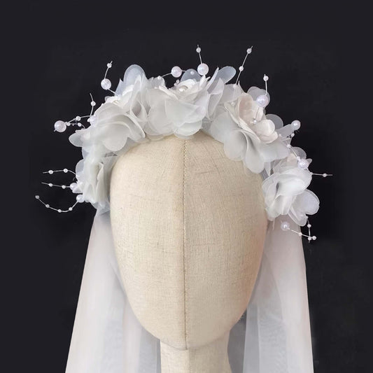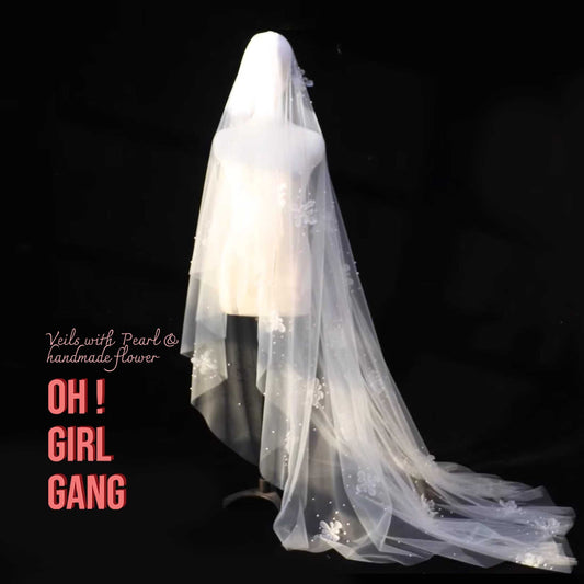 Bridal Veils - Handmade Tulle Flowers with Pearls details