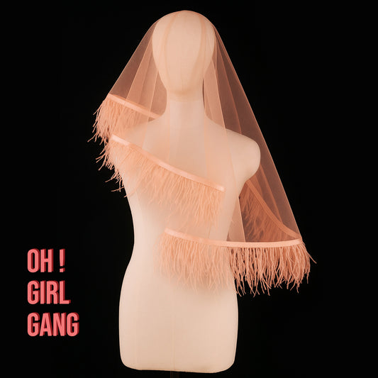 Light Pink Feather Veils: Shoulder Length
