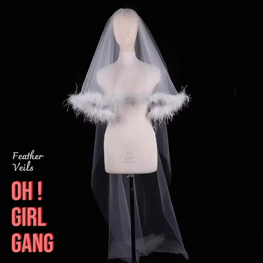 Lilac Feather Veils: Floor Length Chic Wedding Veils