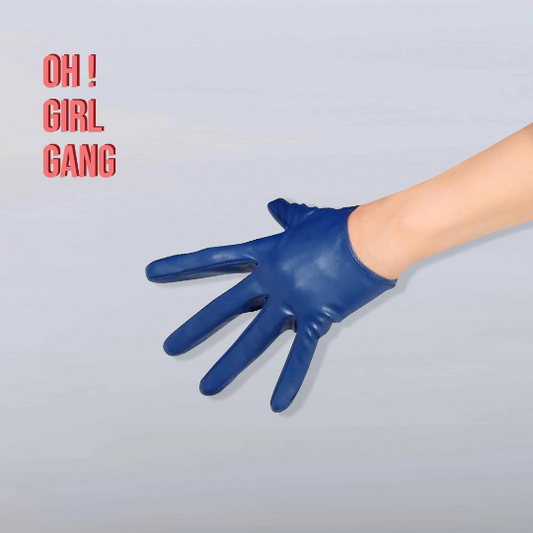 Bright Blue Wide Sleeves Faux Leather Gloves