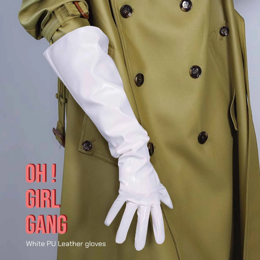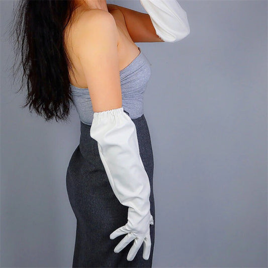White Leather Opera Gloves Wide sleeves