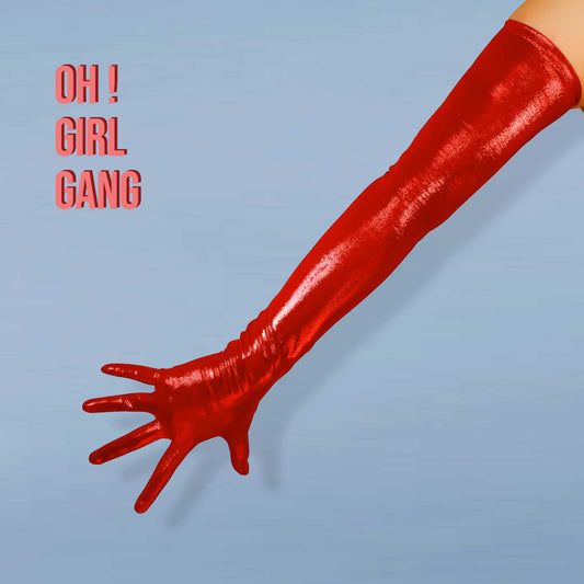 Metallic Pink Long Opera Gloves, Red, Gold, Black, Electric Blue Gloves