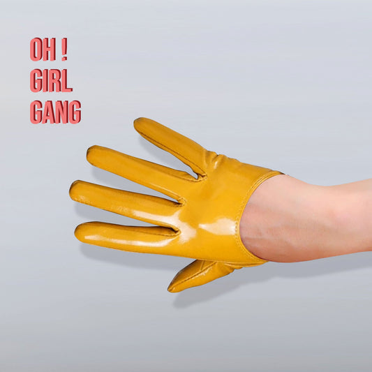 Ultrashort Patent Leather Half Palm Gloves (13cm) Olive green