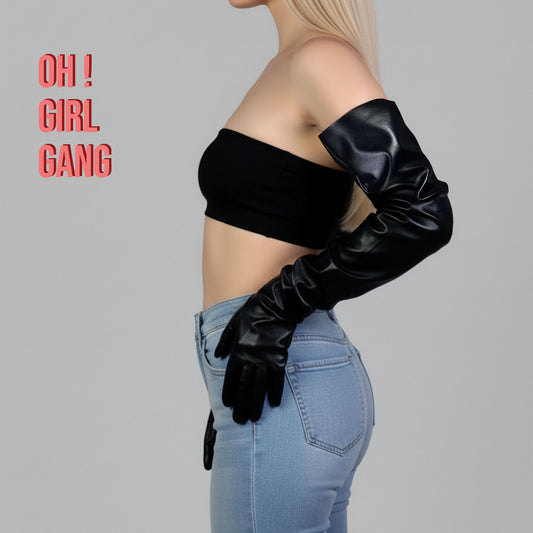 GENUINE LEATHER Black Wide Sleeves Long Gloves (70cm)