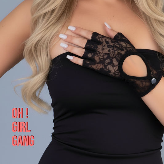 Black Lace Biker Short Gloves