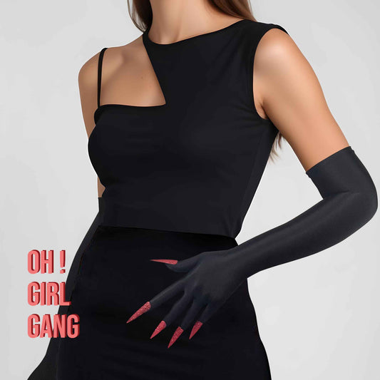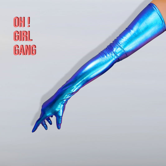 Metallic Blue Spandex Long Opera Gloves with Silver Nails- the Little Devil Gloves