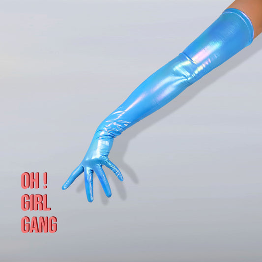 Metallic Blue, Metallic Brown Holographic Opera Gloves (holographic), Ultra Thin Satiny Stretch Mermaid Costume