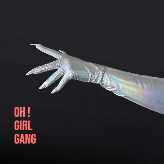 Metallic Silver Holographic Opera Gloves (Holographic) Ultra Thin Satiny Stretch Mermaid Costume