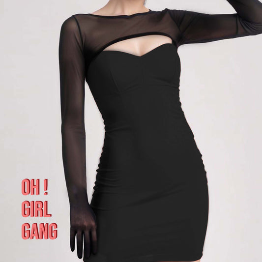 See-through Bolero Mesh Top with gloves (Black, White, Red, Nude Color)