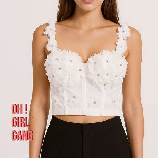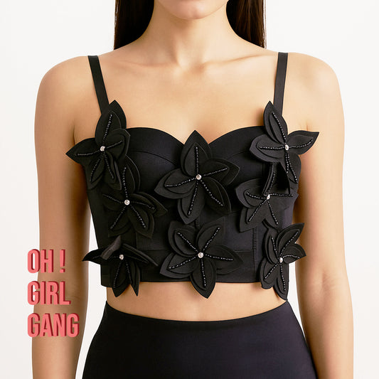 3D Floral Rhinestone Corset Top