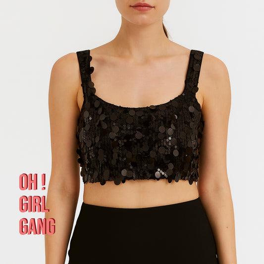 Sequin Cropped Top with Satin Lining