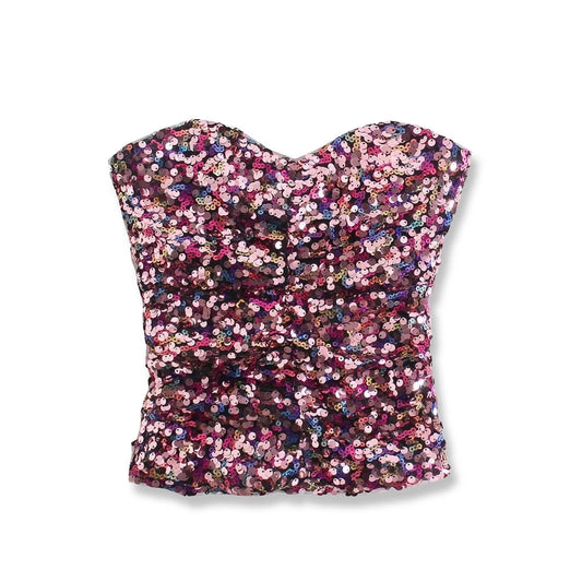 Multi-color Sequin Crop Top Corset, Pink Sequin Elastic Bustier