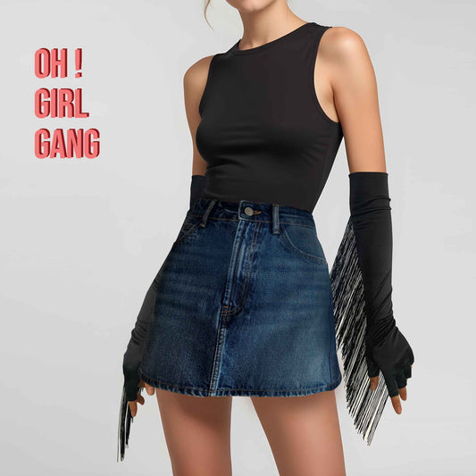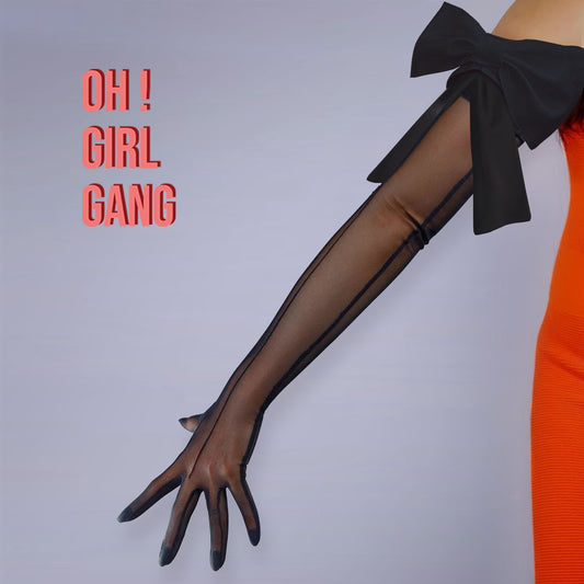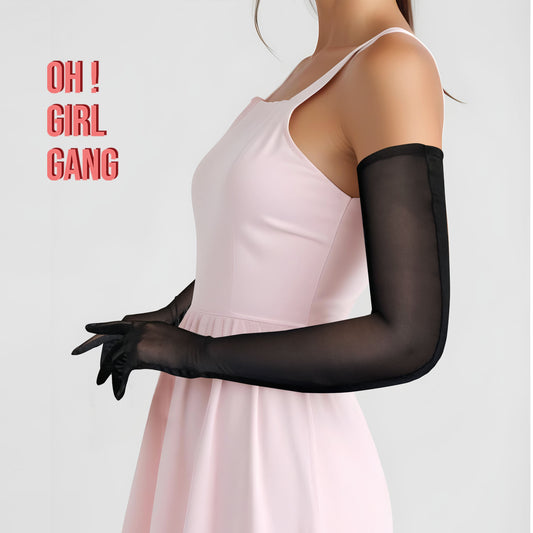 Elegant Black Tulle Opera Gloves with Satin Fringe (70cm) Touch screen