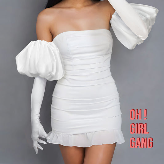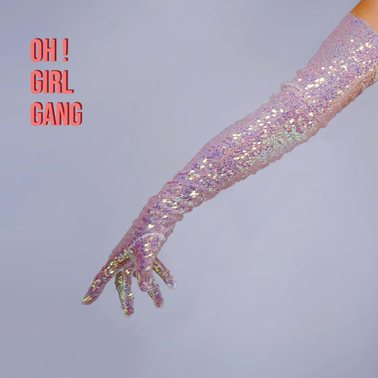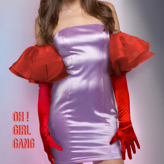 Red Ruffle Satin Opera Gloves ( Pink, Black, White )