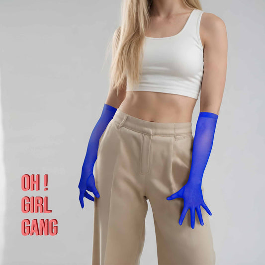 Hot Pink, Indigo Blue, Green Mesh Gloves | Stretchy Elastic Back Lining Opera Gloves
