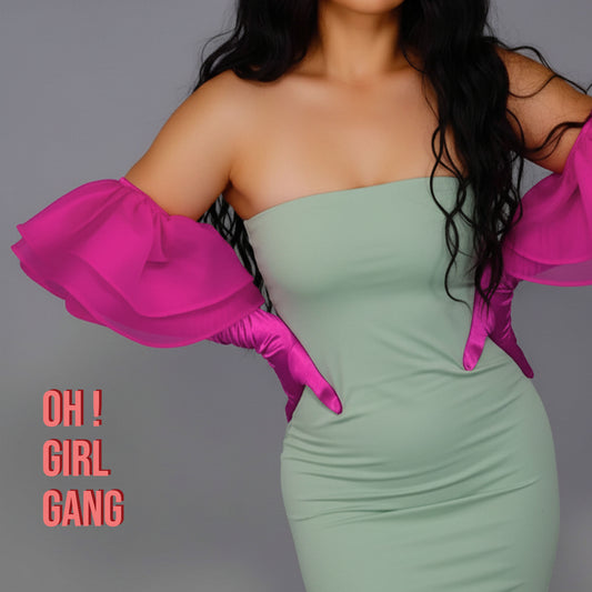 Statement Long Gloves with Puff Tulle, Pink, Lavender, Nude color sleeves gloves.