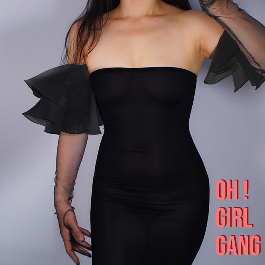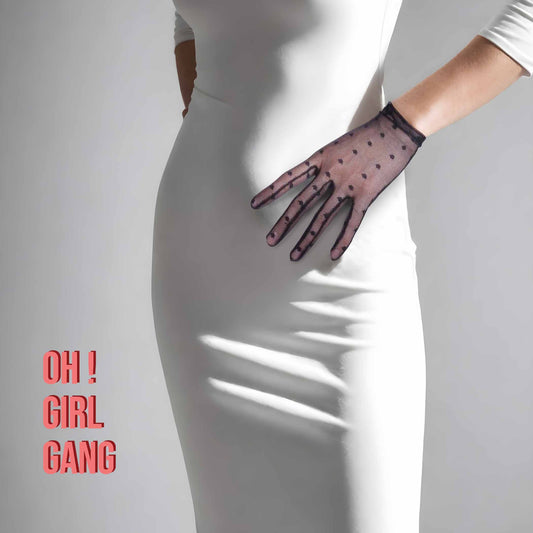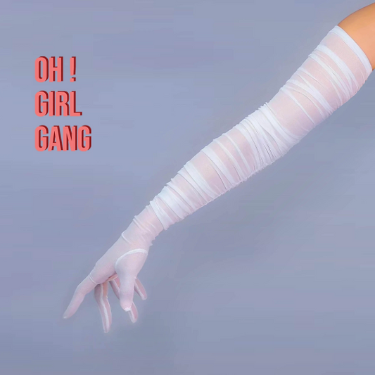 White/ Black Tulle Bridal Gloves. Elbow Length Gloves (52cm)