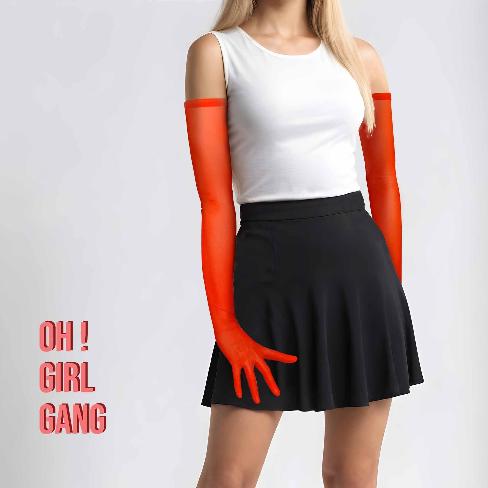 These gloves feature a 70cm length, gracefully extending up the arm for a dramatic effect. The vibrant red color adds a bold and eye-catching element to your look.