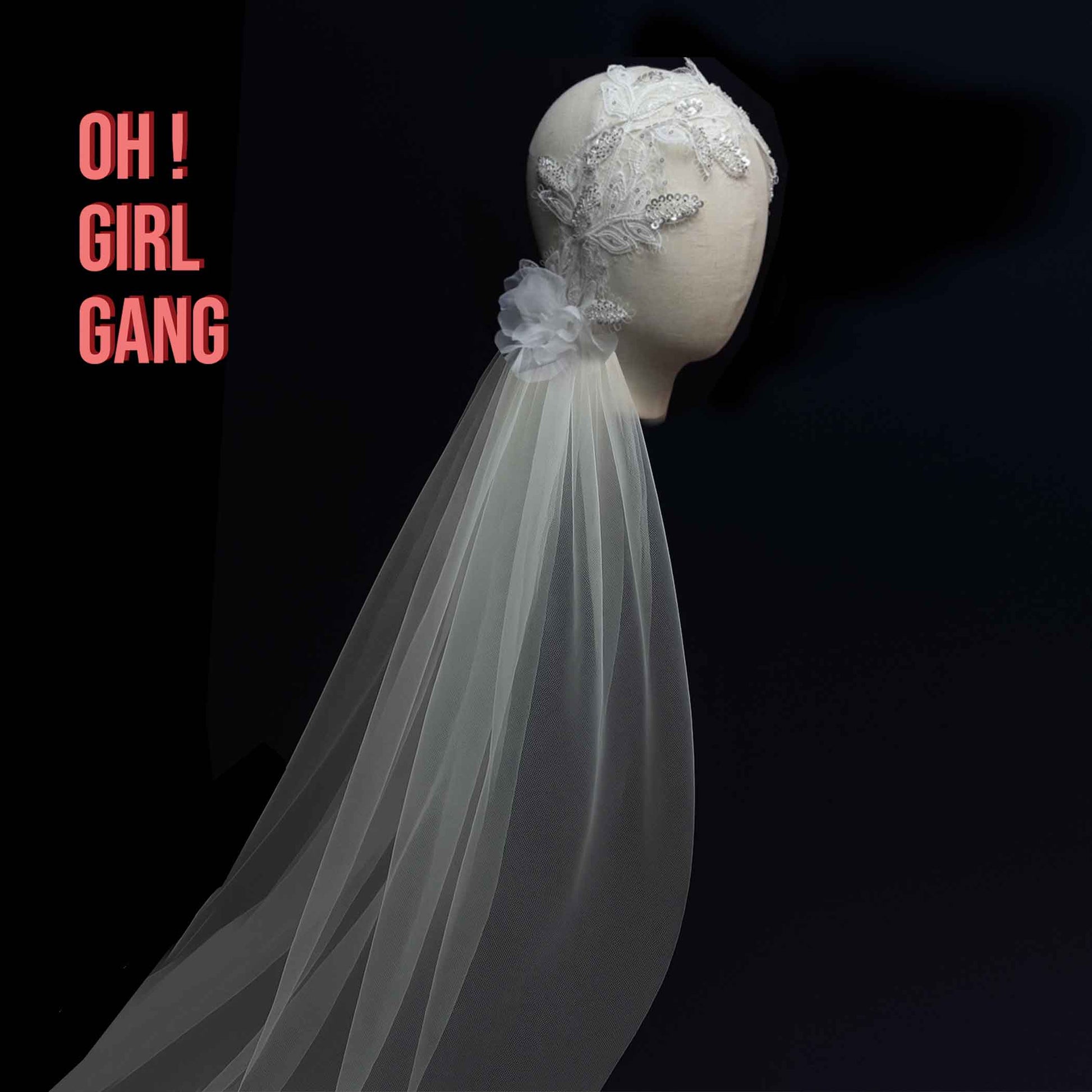 This exquisite vintage-style lace bridal veil features a romantic cap design, delicately handcrafted with shimmering beads and sequins. Perfect for brides seeking a whimsical, ethereal look that blends tradition with fairy-tale charm.